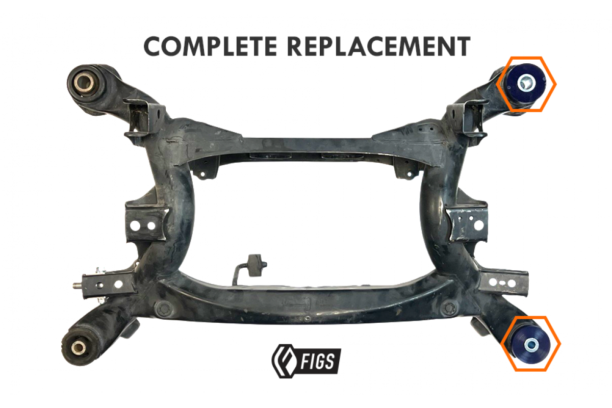 Replace your worn, soft factory rear subframe bushings with our precision-engineered FIGS Engineering subframe bushing set for the 2001–2005 Lexus IS300. Designed as a complete replacement solution, this kit eliminates the flex and deflection of the stock rubber bushings, delivering sharper handling, improved traction, and a more connected feel to the chassis.